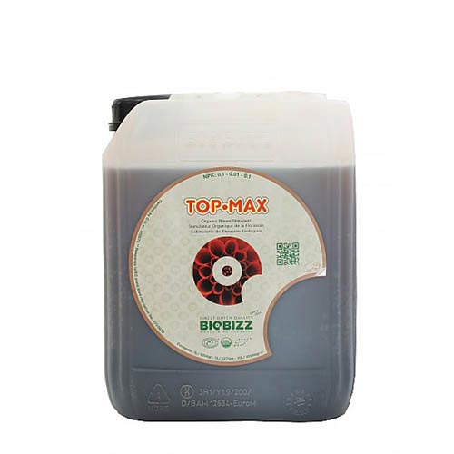 Bio bizz Top Max 5LE’ uno stimolatore della fioritura vegetale al 100% che agevola una rapida divisione delle cellule durante i processi biologici di fioritura, aumentando la produzione e il trasporto di zuccheri verso i fiori o i frutti che la pianta sta producendo.