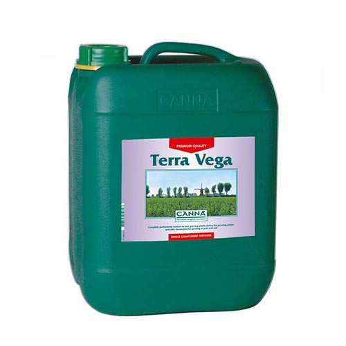Poiché le sostanze nutritive TERRA vengono assorbite rapidamente, la pianta deve impiegare solo una piccola quantità di energia per questo processo, consentendole di focalizzarsi completamente sulla crescita e la fiorituraIstruzioni per l’usoAgitare bene la bottiglia prima dell’usoRiempire la cisterna del nutrimento con acquaMescolare 500 ml del fertilizzante concentrato con 100 litro d’acqua (1:200)EC di Terra Vega diluito in acqua (di rubinetto) può variare tra 0.9 – 1.6 mS (= EC di concentrato + EC di acqua)Valore pH consigliato: 5.8 – 6.2In situazioni di coltivazione intensiva nutrire le piante regolarmente con questa soluzionePer terreni poco fertili, aggiungere giornalmente all’acqua per l’innaffioPer terreni fertili, aggiungere all’acqua per l’innaffio 1 à 3 volte alla settimanaUtilizzare un terreno arioso e calcareo, come CANNA Terra Professional (Plus) e innaffi are con acqua ogni giorno secondo le esigenzeAltre indicazioniPer la fase di fi oritura della pianta Canna ha ideato un altro fertilizzante, Terra FloresConservare in un luogo chiuso e al riparo dal gelo (I raggi ultravioletti scompongono i chelati presenti nel nutrimento)Tenere lontano dalla portata dei bambiniCertificazioni / GaranzieCanna utilizza esclusivamente sostanze nutrienti e chelati puri e di alta qualità assimilabili direttamente e totalmente dalla pianta.Il fl acone di dosaggio è di polietilene 100% (PVC, senza cadmio), una plastica di facile biodegradabilità e anche riciclabile.Disponibile nei formati 500ml, 1L, 5L, 10L, 20L