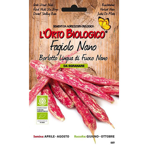 Fagiolo Borlotto Lingua di FuocoIl Fagiolo Borlotto Lingua di Fuoco è una varietà nana da sgranare.