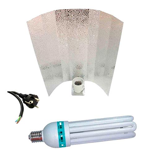Kit CFL 200W Fioritura Questo kit CFL 200W con lampada da 2700k per la fase di Fioirtura consente a chiunque di avere un’illuminazione per indoor di facile montaggio, pronta ad esaudire le vostre esigenze. Il kit contiene:Spectrum Grow Light 2700K 200WCavo elettrico con presa 2mRiflettore Stuco 85% Plus Lampada Spectrum Grow Light 200w 2700K Lampada spectrum grow light è una lampada a basso consumo di ottima qualità.Sviluppa 13000 lumens effettivi ed ha una durata maggiore rispetto alle altre lampade sul mercato.Riflettore Stuco Martellato 470×400:Riflettore stuco martellato 470×400 completo di attacco E-40.Si può utilizzare con lampade ai ioduri metallici, ai vapori di sodio e con le CFL.Semplice da montare.Aumenta la riflessione della luce, senza ridurre l’area di copertura.
