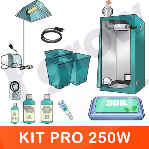 Kit Indoor 250W – Max 4 Piante Kit di coltivazione HPS 250w + Grow Box, da sempre le lampade più usate nella coltivazione indoor, il massimo in termini di resa.