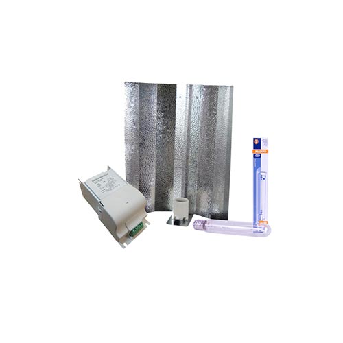 Kit Osram HPS NAV-T 400WQuesto kit di illuminazione Osram 400W consente a chiunque di avere un’illuminazione per coltivare in indoor di facile montaggio, pronta ad esaudire le vostre esigenze. Il Kit contiene:Riflettore Stuco 85% PlusAlimentatore Spectrum Grow Ballast 400WOsram hps nav-t 400WCavo elettrico 3×1,5 sez.1mCavo elettrico con presa 2m Alimentatore Spectrum 400W:Trasformatore termomagnetico di ottima qualità.