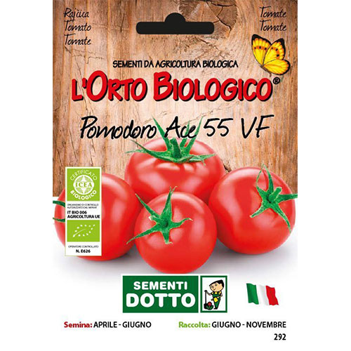 Pomodoro Ace 55 VFIl Pomodoro Ace 55 VF è una pianta determinata della famiglia delle Solanacee, originaria del Perù.