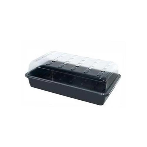 Propagatore mini serra 38x24x12 cmpropagatore mini serra In plastica morbida nera con coperchio trasparente.Dimensioni: 38x24x12.